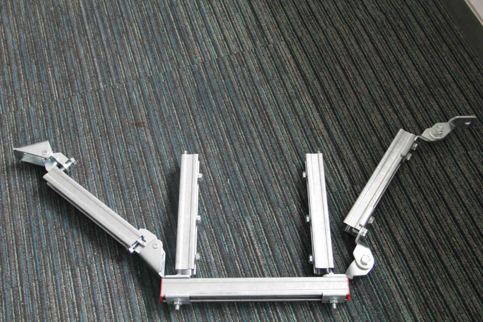 4、安装风管抗震支架上下两根横梁,其中下横梁须拧紧,进而安装限位组件,上横梁维持松弛状态。